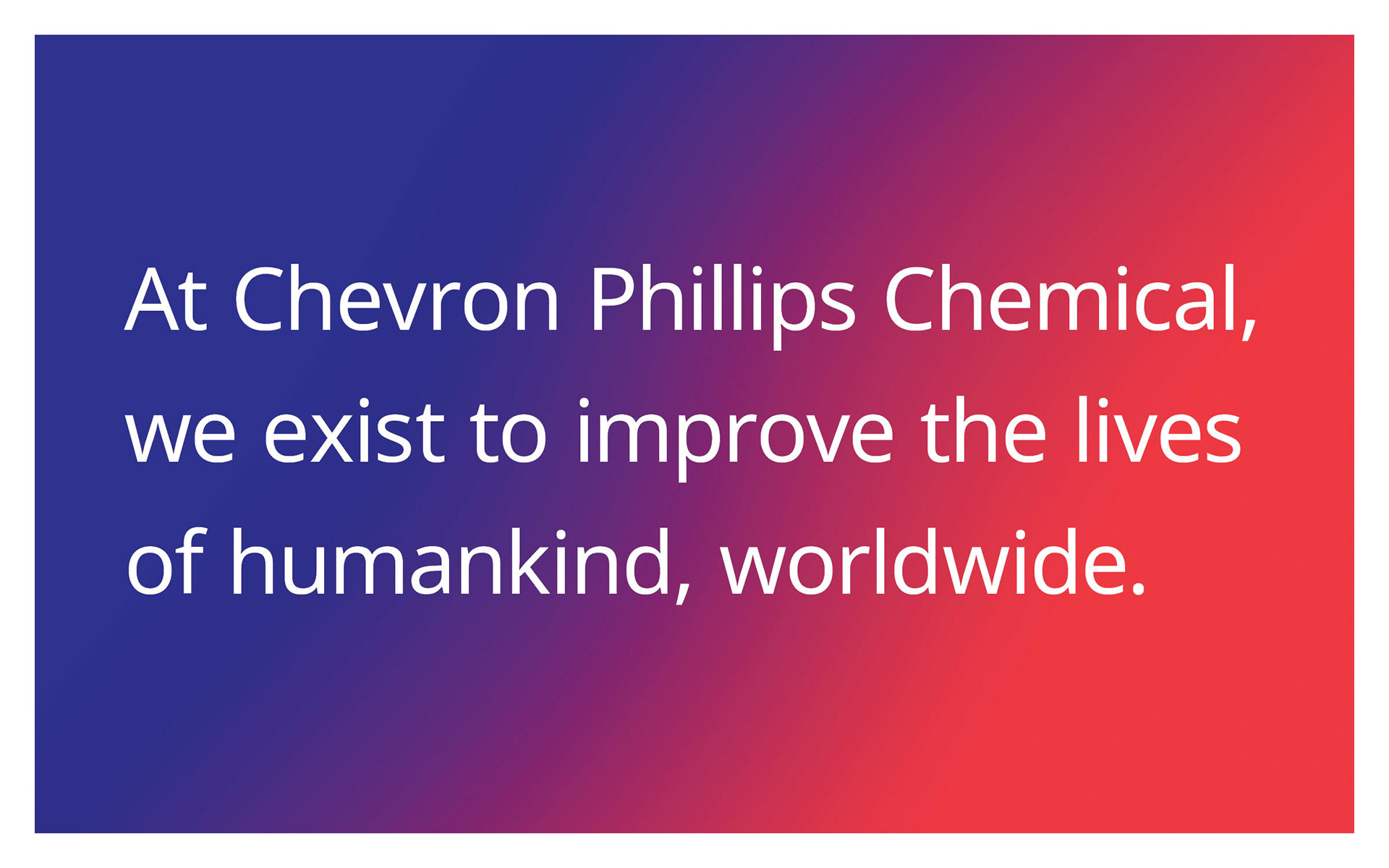 The brand story is an all-encompassing narrative that factually frames Chevron Phillips Chemical’s reason for being – to improve the lives of humankind, worldwide – while inspiring and eliciting awareness of these facts at an emotional level. The story resonates with humanity, attracting and drawing them to the Chevron Phillips Chemical brand.