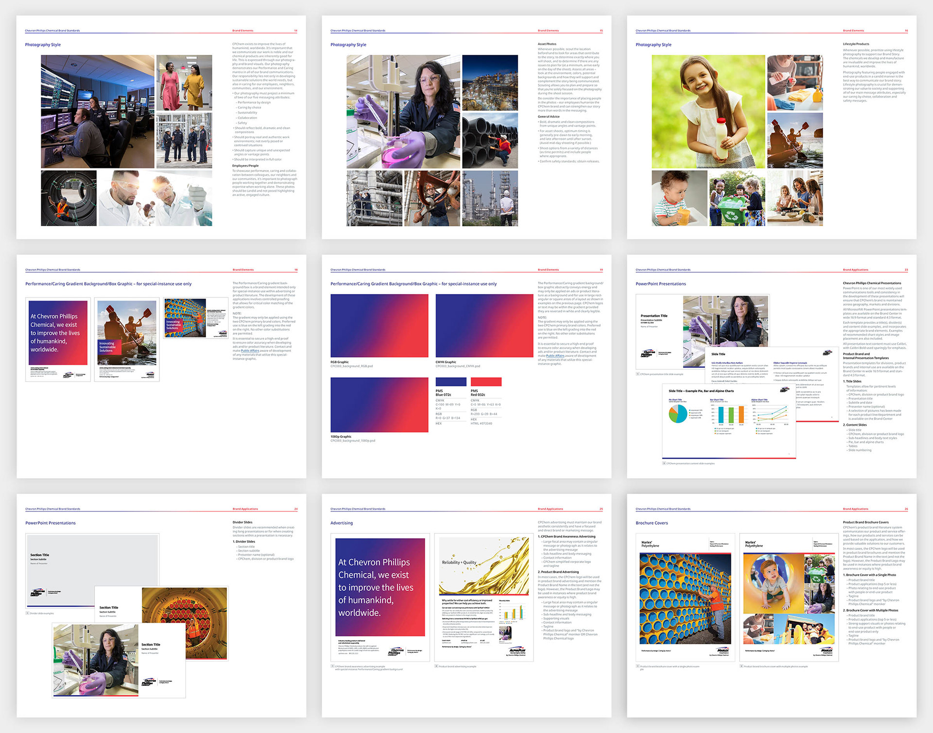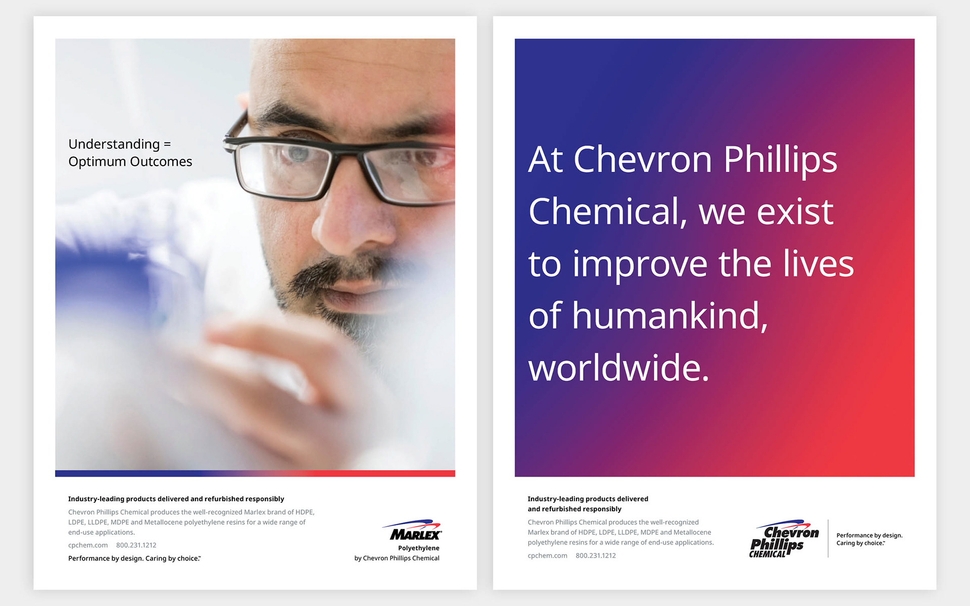 We began by redefining Chevron Phillips Chemical global brand standards, which led to a comprehensive evolution of its employee culture, environmental, health, and safety (EHS) programs, and sustainability (ESG) efforts through updated messaging and visual identities within the global brand.