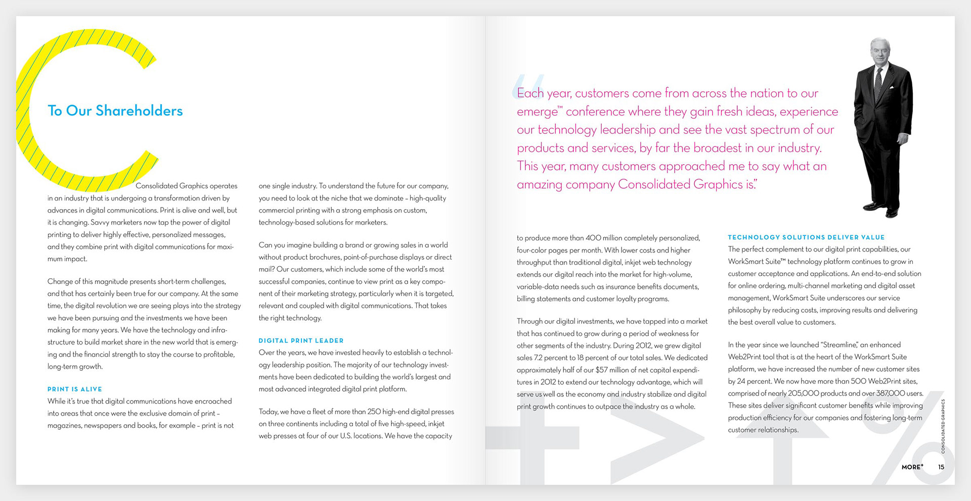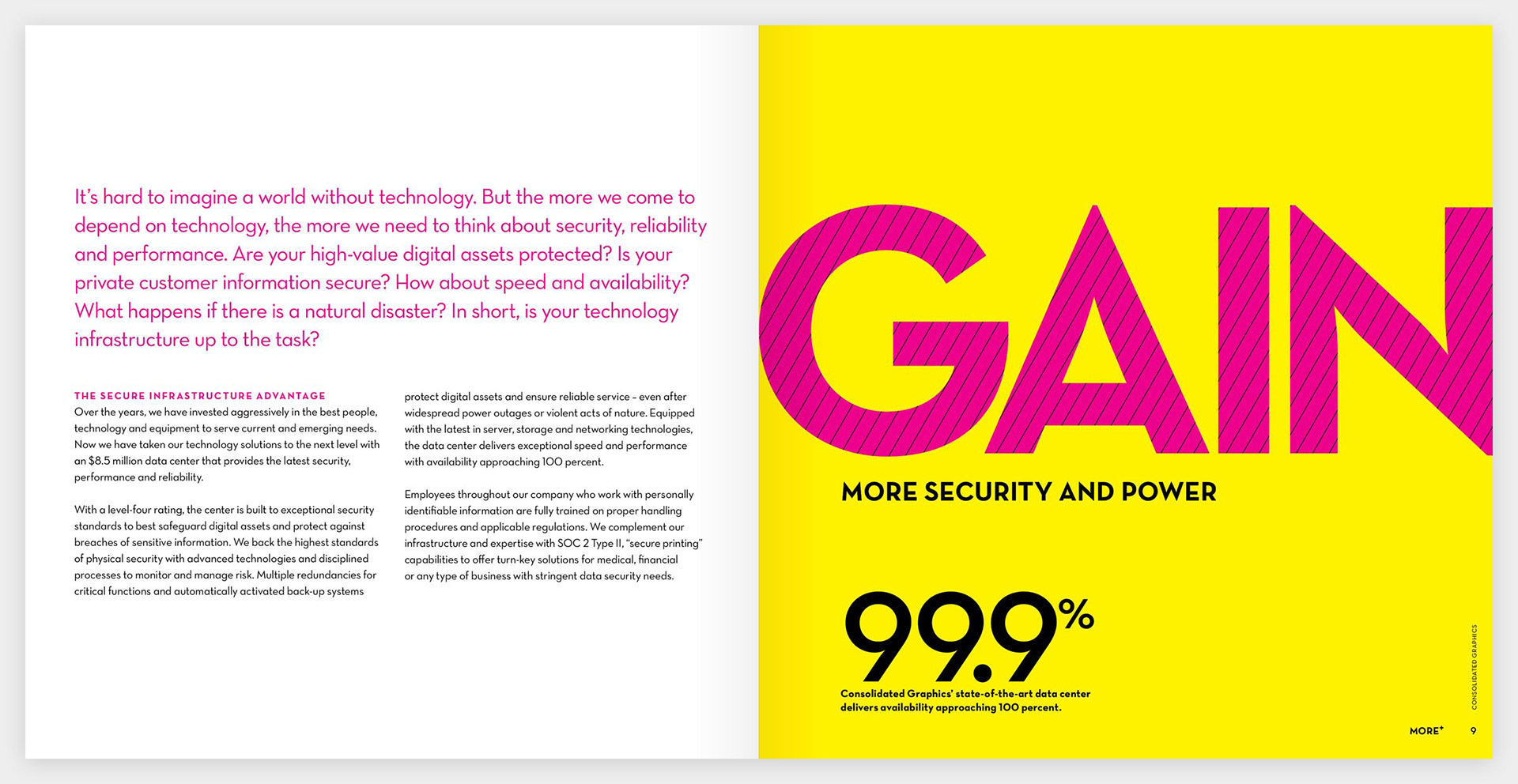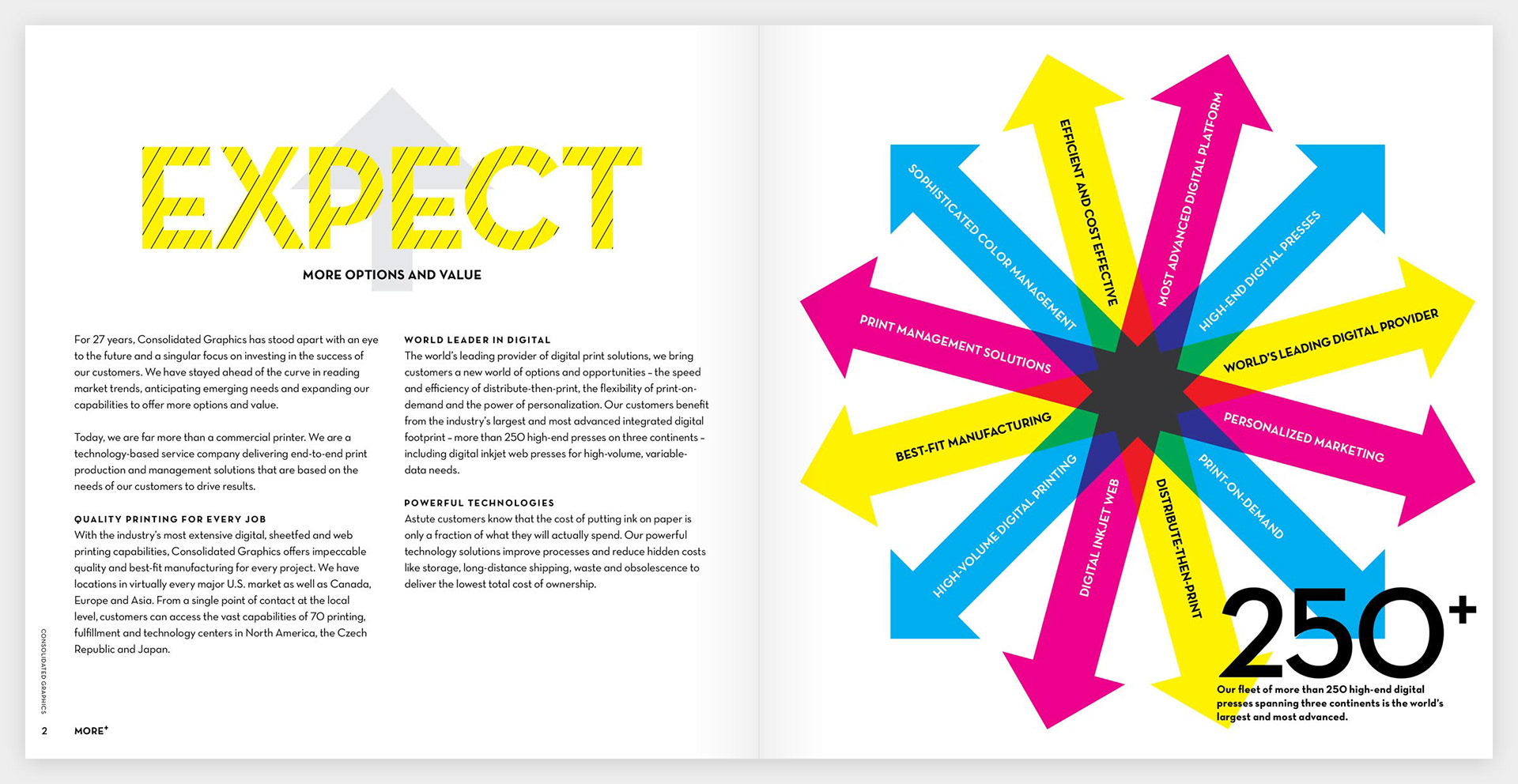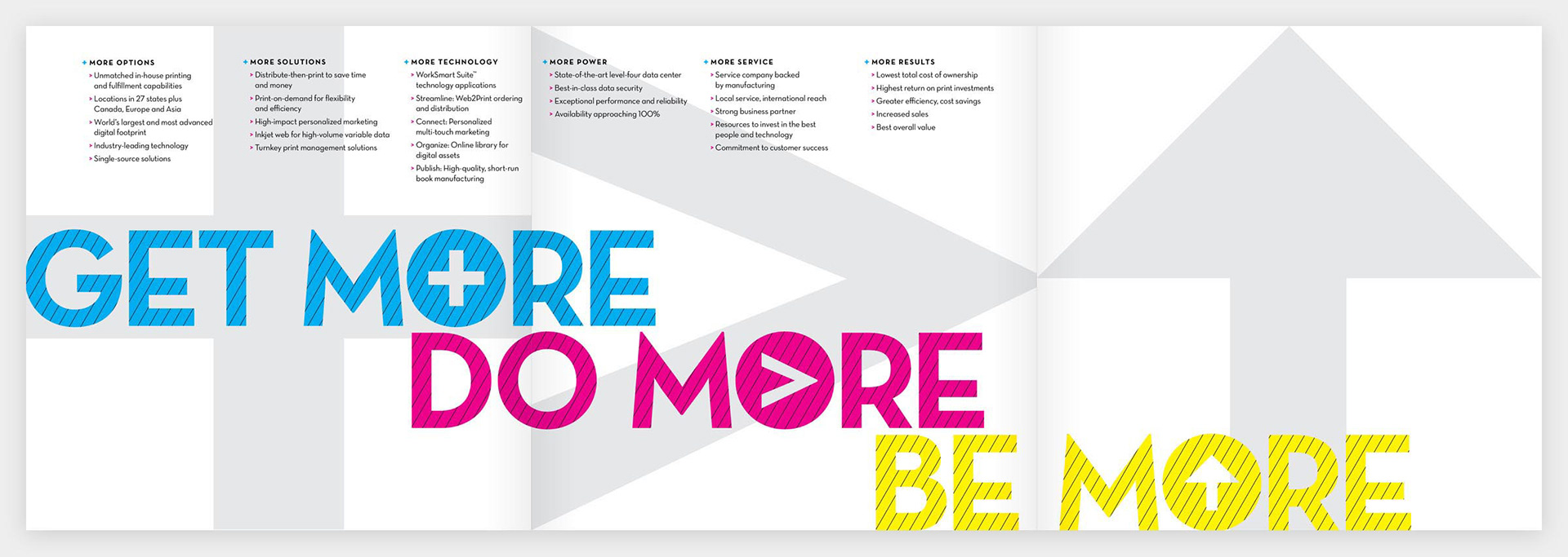 CGX's annual report showcases its strategic and technological leadership in digital printing, particularly in digital communications. This focus is reinforced by the simple yet powerful message: "Get more. Do more. Be more." and through the design with bold symbolism and graphics in CMYK printing colors.