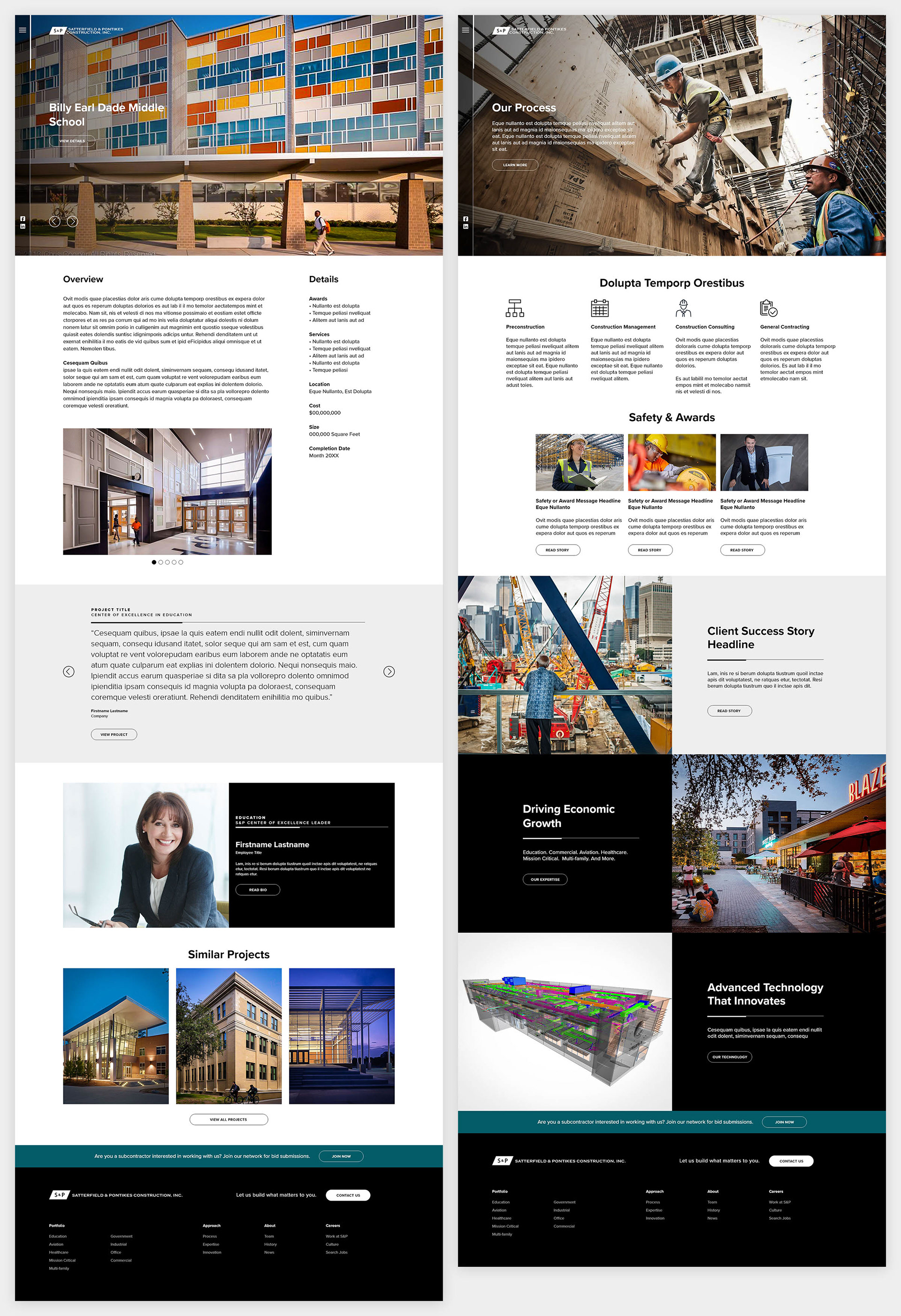 The website design strategy showcases their construction management systems, technological advancements, and a diverse portfolio of regional and national projects.